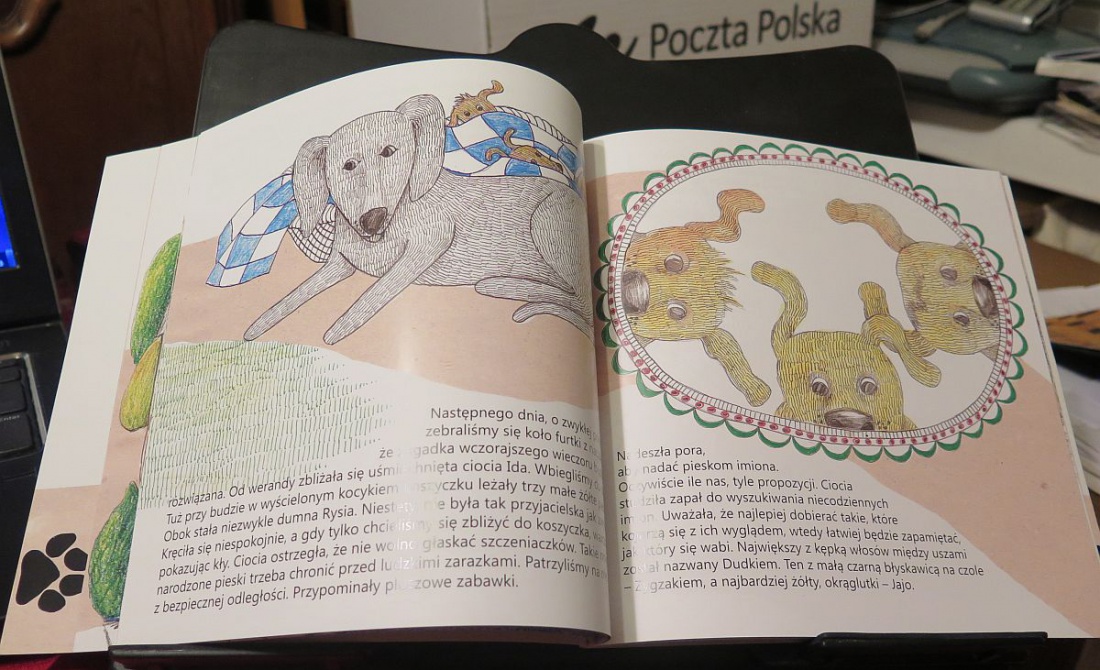 | Trzy Żółte pieski książka napisana jest z myślą o dzieciach w wieku wczesnoszkolnym, o dzieciach, które lubią opowiadania o zwierzętach, lubią się z nimi bawić i nimi opiekować. Książka zainteresuje też przedszkolaków, bowiem atutem książki jest nie tylko interesujący tekst, ale te ilustracje DeRudej to jest bogactwo. Pobudzają wyobraźnię do snucia własnych opowieści o przygodach tytułowych piesków. Książka inspiruje do wielu działań twórczych i formą edycji zachęca dzieci do samodzielnego czytania.
