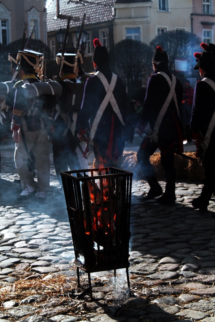 Z improwizacji Bitwy o Tczew z udziałem wojsk napoelońskich z roku 1807, przemarsz wojsk na Plac Hallera w Tczewie (22 lutego 2014).