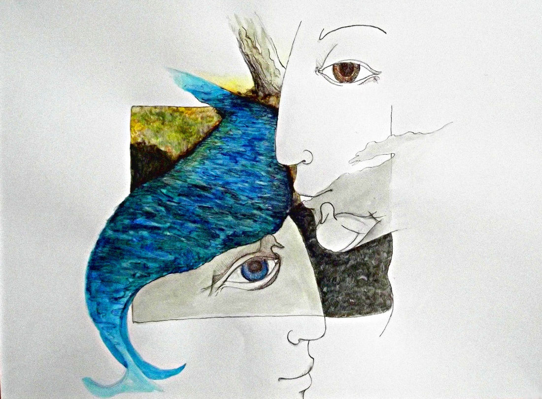 technika mieszana, inspiracja zdjęciem Jerzego Wolińskiego "rzeczka Kłodawka" :)