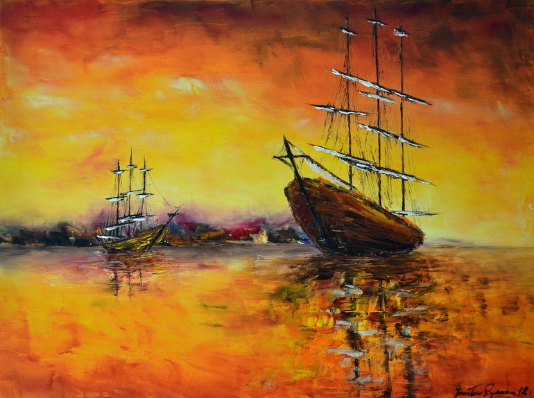 Z cyklu "Fregaty" Autor: Jarosław Rymarz Olej na płótnie 80x60 cm 2012 r........ From the series "Frigates" Author: Jaroslaw Rymarz Oil on canvas 80x60 cm 2012