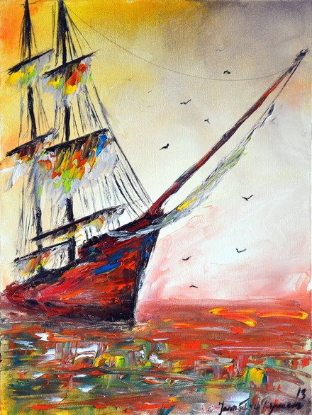 Autor: Jarosław Rymarz Z cyklu Fregaty Olej na płótnie 40 x 30 cm Author: Jarosław Rymarz From the series Frigates Oil on canvas 40 x 30 cm
