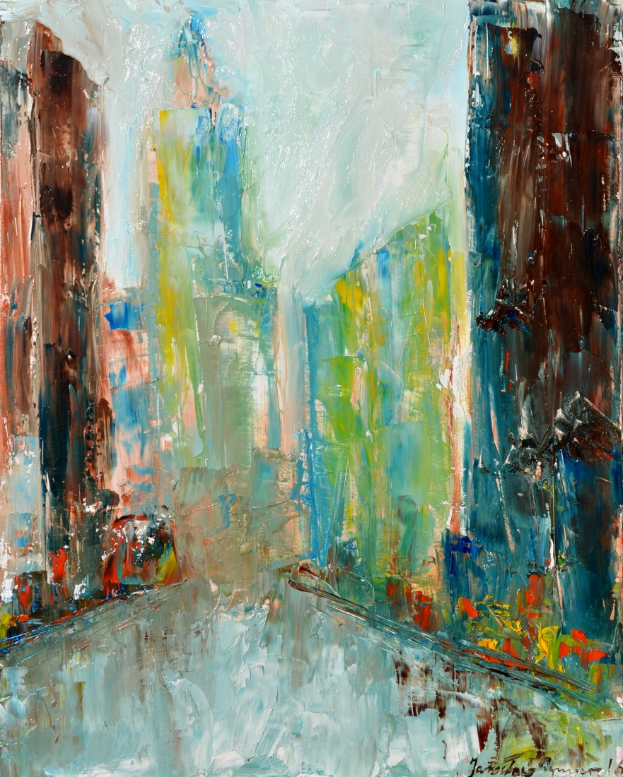 Z cyklu "Miasto" Autor: Jarosław Rymarz Olej na płótnie 40 x 50 cm Szpachla 2016 r. From the series "The City" Author: Jaroslaw Rymarz Oil on canvas 40 x 50 cm palette knife 2016