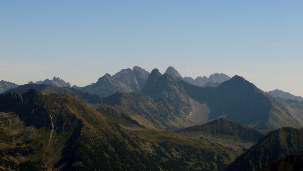 Panorama Tatr, widok z Krzesanicy.