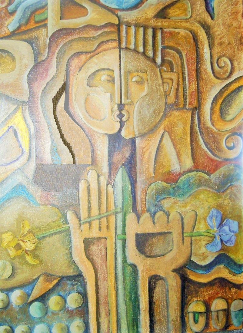 Akryl. Edmund Pospieszny - pierwszy obraz w tym stylu namalowany ponad 30 lat temu /kiepska jakość zdjęcia/