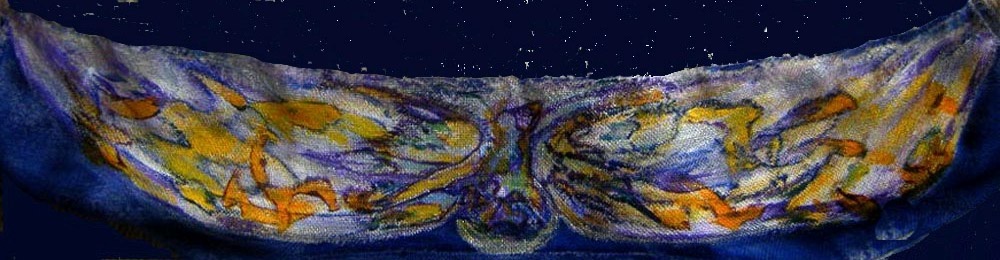 malowane farbami na tkaninie lniano-bawełnianej, tym razem panoramicznie i bardziej płasko