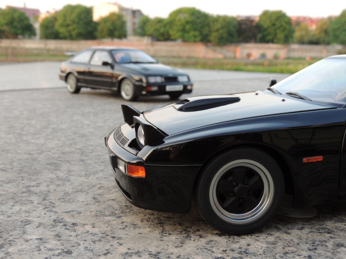 Ford Sierra RS Cosworth oraz Porsche 924 Carrera GT. Modele w skali 1:18, oba produkcji AutoArt. Zdjęcie wykonane aparatem Nikon P510.