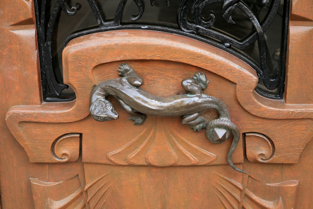 une blague de Jules Lavirotte - kawał (żart) Jules Lavirotte (architekt) - Cały portlal ukazuje genitalia męskie. Klamka (uchwyt do otwierania drzwi) jest w formie jaszczórki (lésard = penis w żargonie francuskim z tego okresu). Architekt sobie zażartował z hipokrytek paryskich i swym dziełem zmusił je do dotykania penisa publicznie. http://upload.wikimedia.org/wikipedia/commons/4/47/XDSC_7288-29-av-Rapp-paris-7.jpg i http://fr.wikipedia.org/wiki/Jules_Lavirotte
