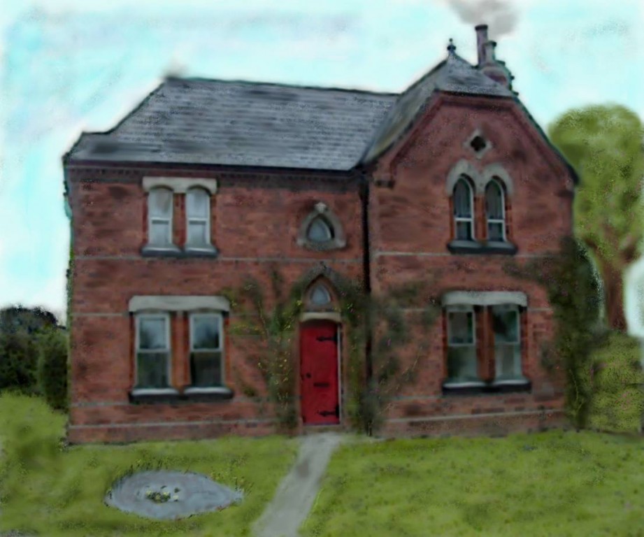 The original building of the village primary school was a house extended to provide the classrooms. This photo was edited to remove the extensions and create an impression more like a painting. ©Rhumour 1999